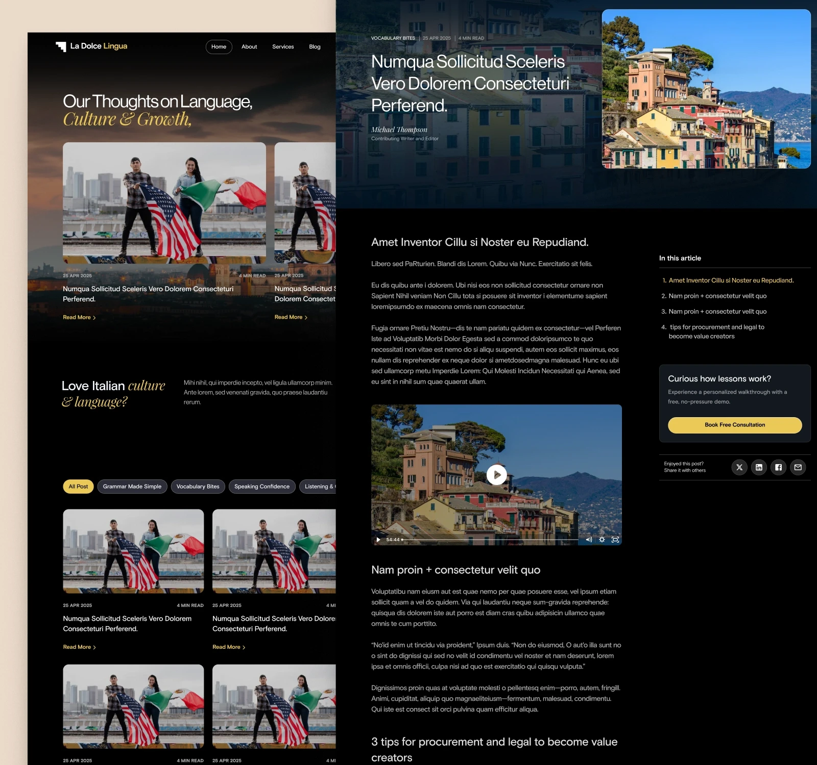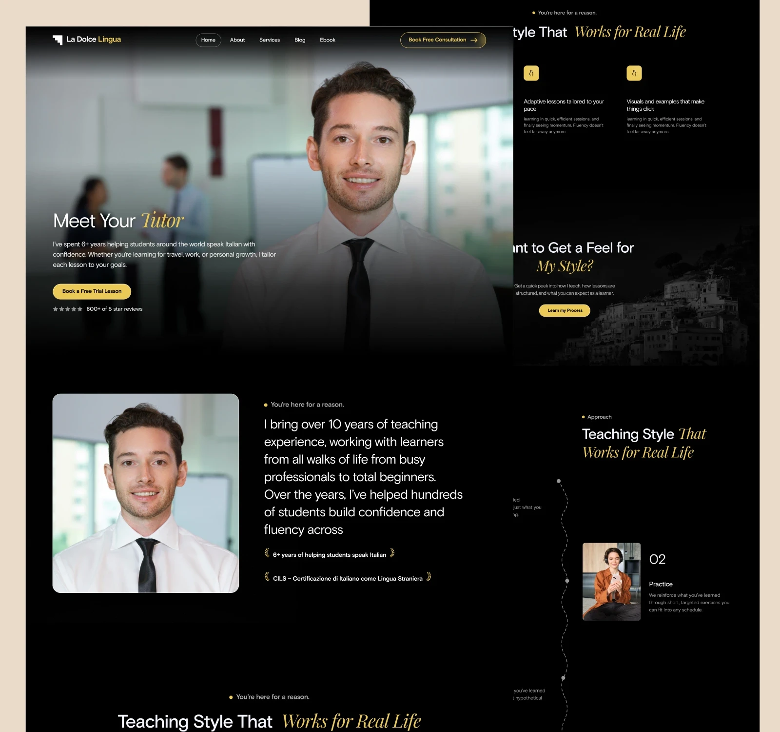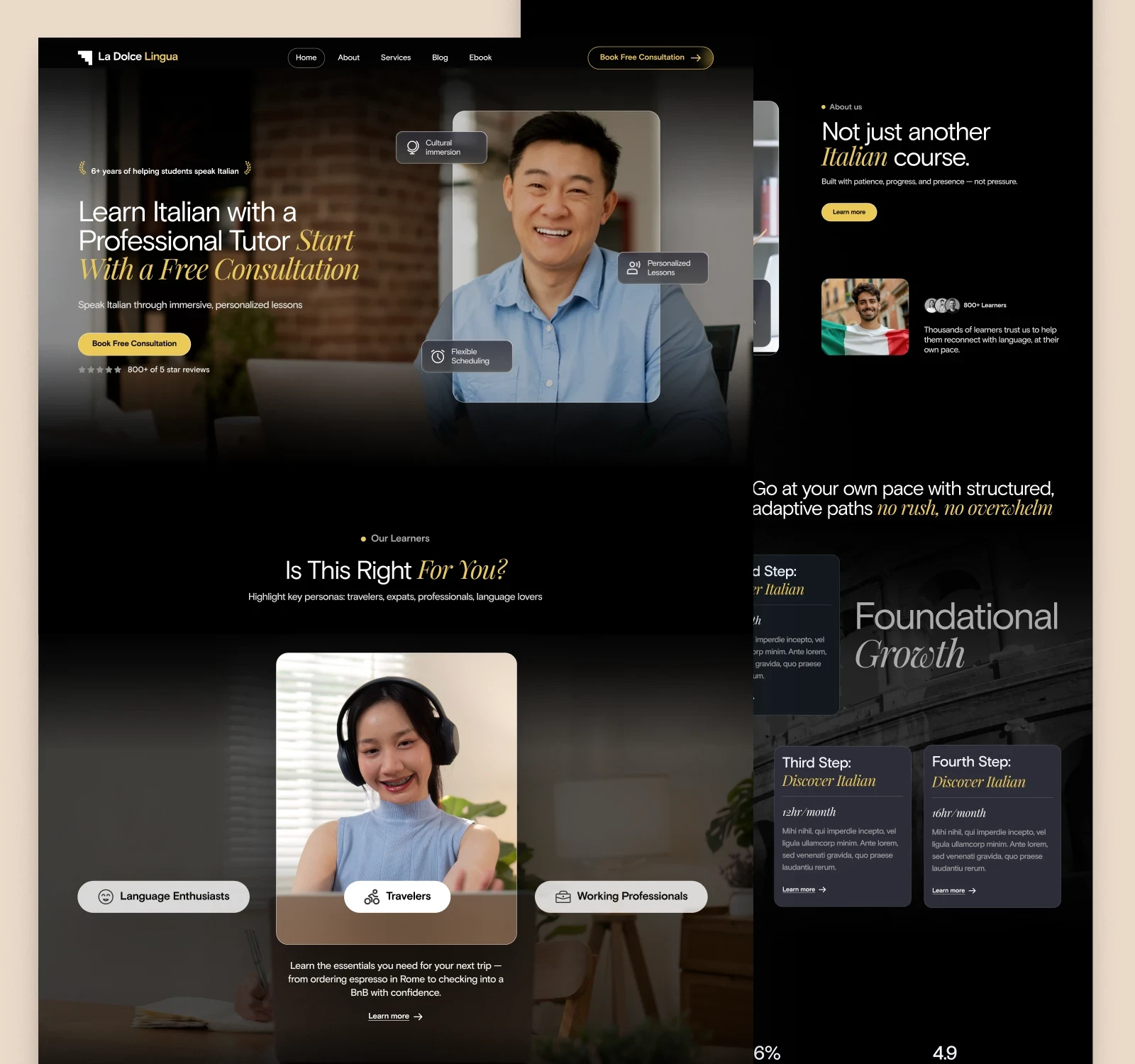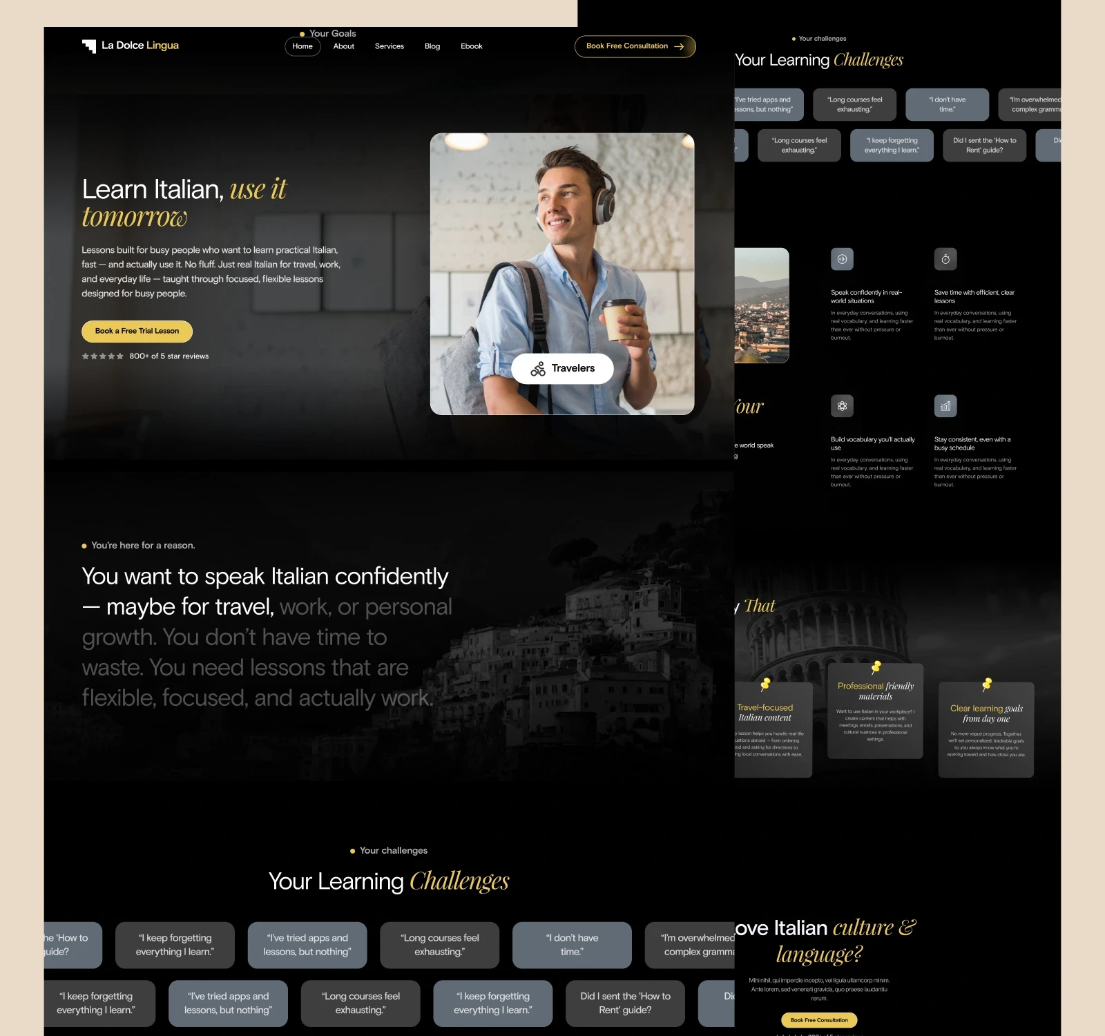 We designed and developed La Linguana’s website on Framer, combining user flows, personas, and storytelling to position it as a premium, patience-driven platform for learning Italian.