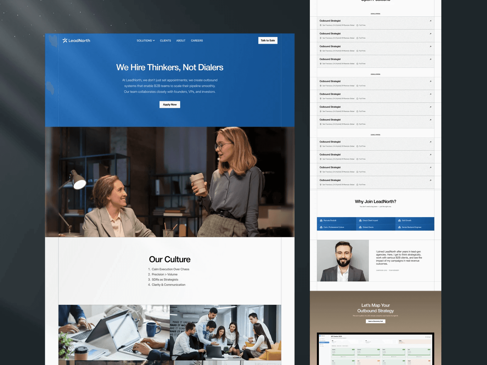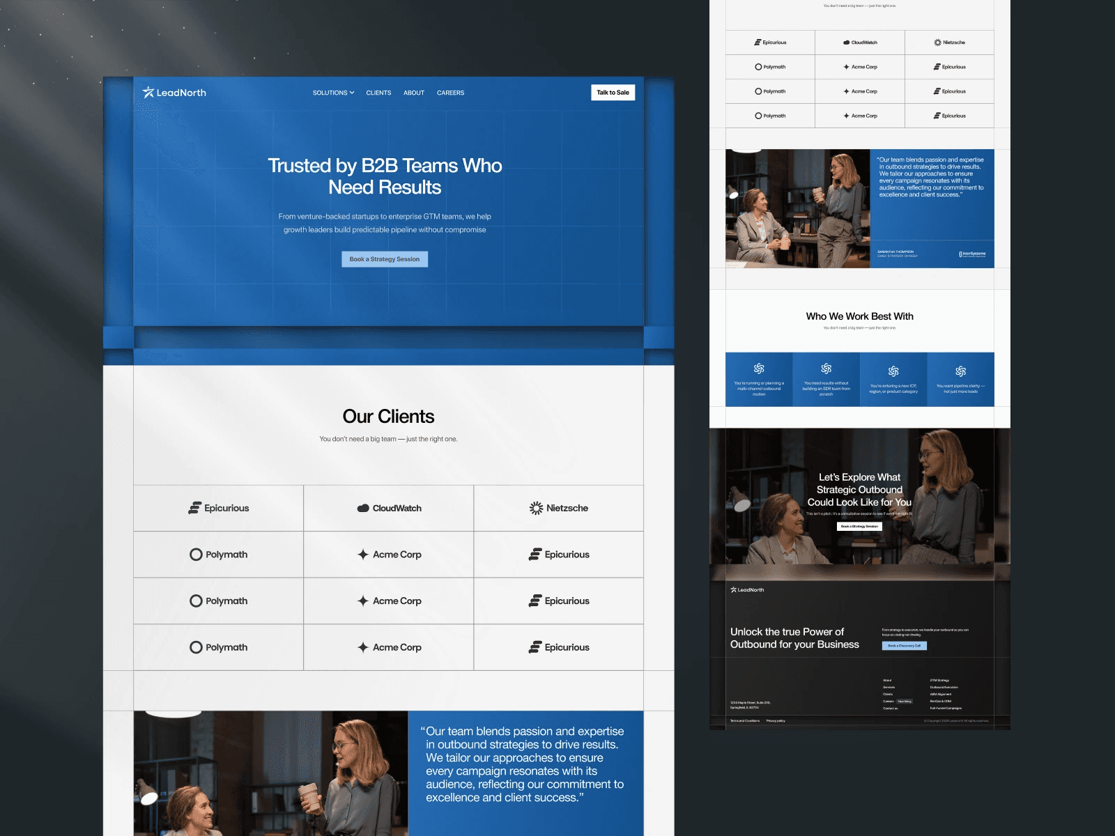 We designed and developed LeadNorth’s Framer website, creating a modular platform to showcase solutions, clients, and careers while aligning with their bold, strategy-first positioning.